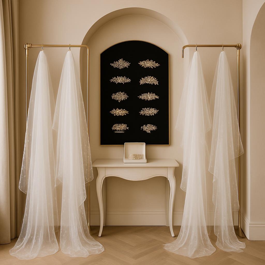 Complete your look with our curated selection of veils, belts, hair combs, and more!