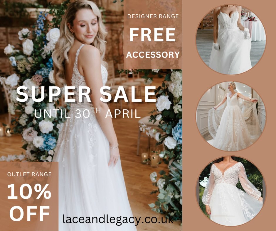 At Lace & Legacy, we have a range of styles and dresses available. We cover a simple plain satin all the way through to a luxurious lace- and that’s just the wedding dresses.